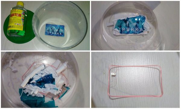 В интернетах пишут, что карту "Тройка" можно растворить в ацетоне. Растворяю: