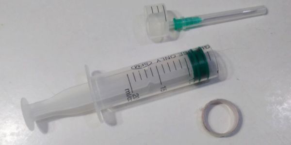 Не удивительно, что и сейчас я решил подстраховаться и предварительно оклеил шприц скотчем, что бы потом быть уверенным, что кольцо будет легко снять с оправки.