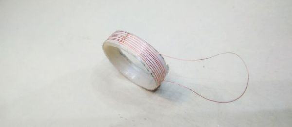 Для уменьшения габаритов решил все-таки использовать ту тонкую проволочку от тройки. Намотал пять витков замкнутых на чипе (около 34см) и мотаю дальше сколько хватит проволочки.