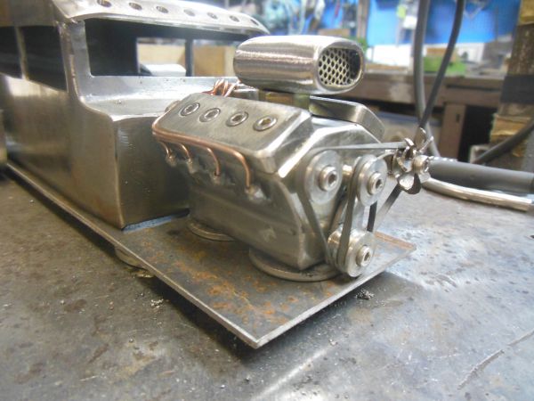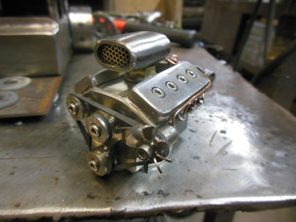 Мотор был выбран V8. Приводные ремни были сделаны из вело.камеры. Ровно так и не смог отрезать.Уже в окончательной сборке были заменены на уплотнительные кольца подходящего размера.