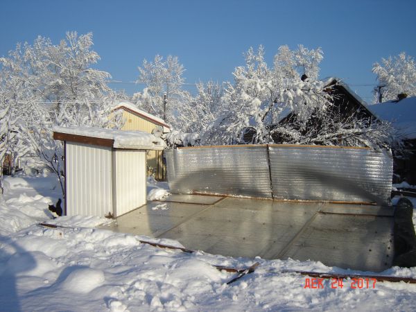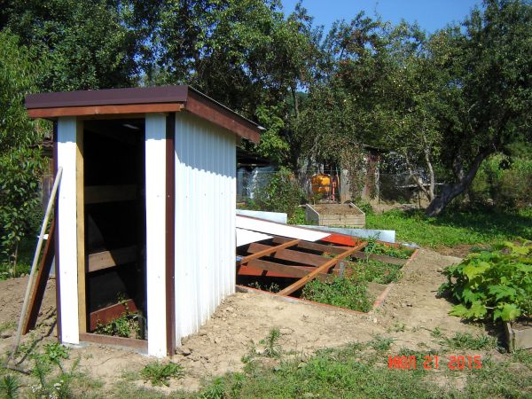 Подземная теплица 5 на 3,5 м, глубиной не многим более 2-х м. Крыша: поликарбонат 10 мм, построена осенью 2015 г.