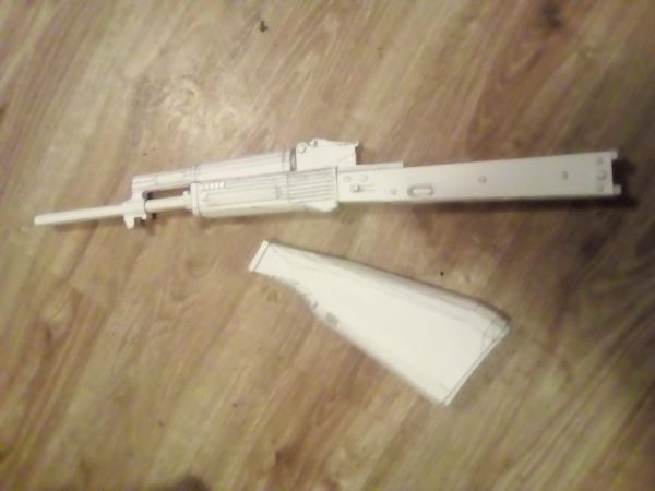 С прикладом, кстати произошла заминка. В оригинальной развертке был складной рамочный. Мне же хотелось монолитку... После долгих прочесываний интернета, ничего точного не нашел, решил стридешничать и развернуть сам. Вот что получилось