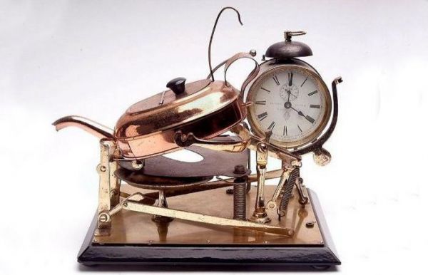 Когда боб, плавающий на поверхности воды в клепсидре, достигал определенного уровня при уменьшении уровня воды, срабатывал сигнал тревоги. В более поздних версиях появились шестеренки.