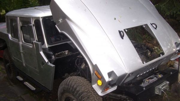 Фанат модификаций превратил старый ГАЗ-66 в Хаммер, переделав кузов и добавив машине лошадей с помощью двигателя от Мерседеса. Получилось очень похоже.