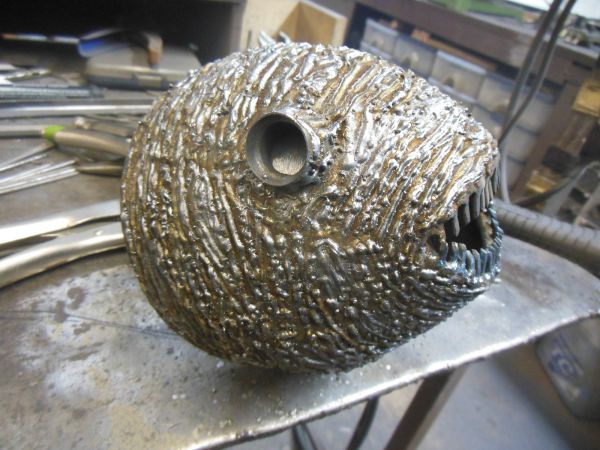 Сначала сделал каркас для головы из электродов. Потом обшил металлом 2мм.