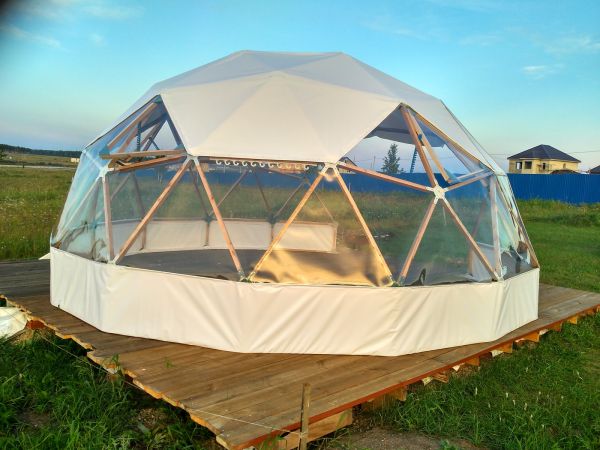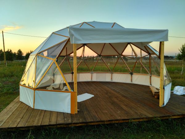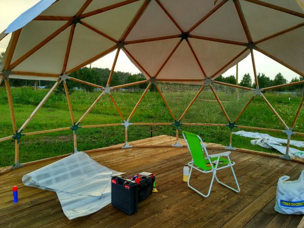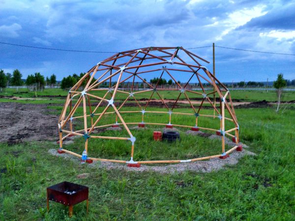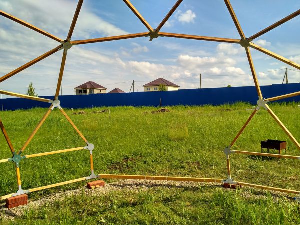Захотел беседку на своем пустом куске земли. Главные критерии: защита от ветра, защита от насекомых, защита от солнца. Обычные беседки мне не нравятся, да и дорого. Делать хотел сам, опыта ноль, и в разговоре со знакомым он упомянул купольные конструкции, я посмотрел варианты и решил делать по этой технологии.