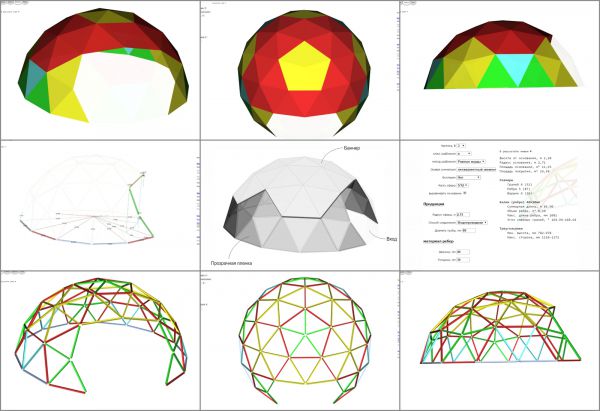 Вот скрины моего купола из этого калькулятора (среднюю картинку я сам дорисовал)