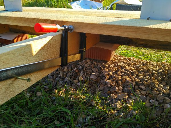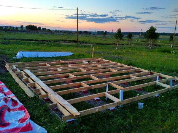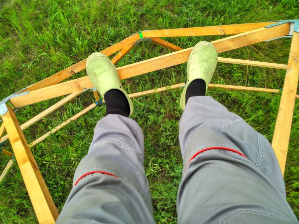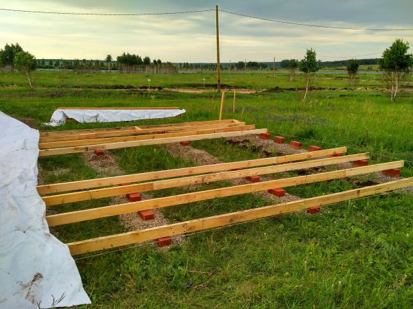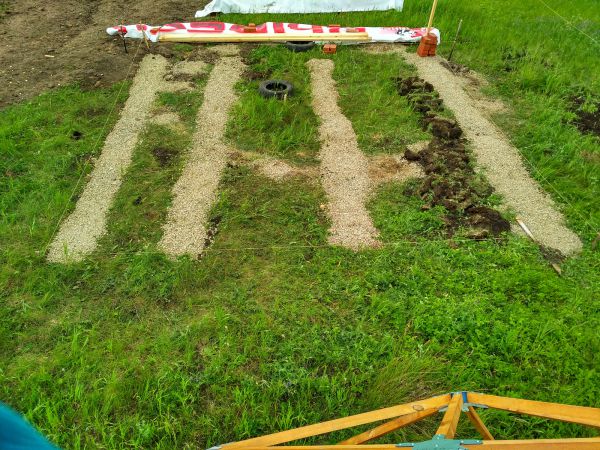 Еще мои ошибки: начал собирать основание сразу на земле, участок не ровный, под уклоном, кочки, но у меня же шило в заднице, охота работать быстрее...