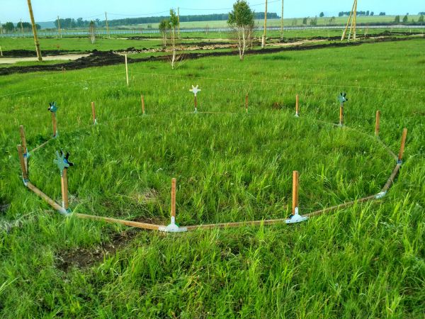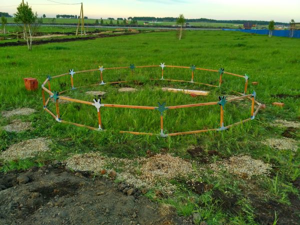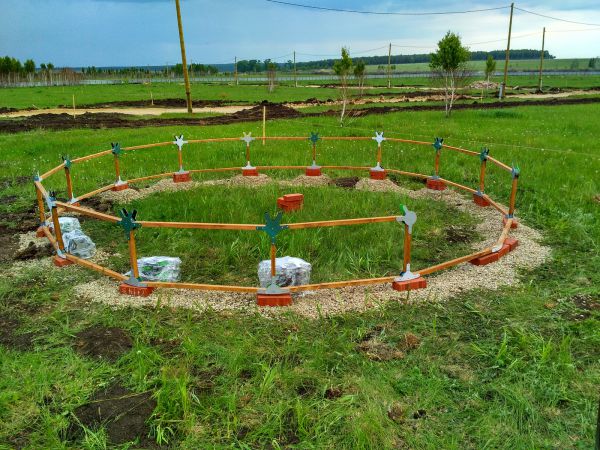 Еще я не очень понимал как мне разметить места для опор беседки, она же круглая и палки нижние не одного размера, короче, после сборки основания я начал рыть.