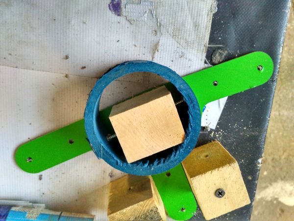 Для трубы я взял картонные шпули от рулонных материалов, лучше брать пластиковые. Но нагрузки на них не предполагалось, они больше служили упором, в который упирались бруски.