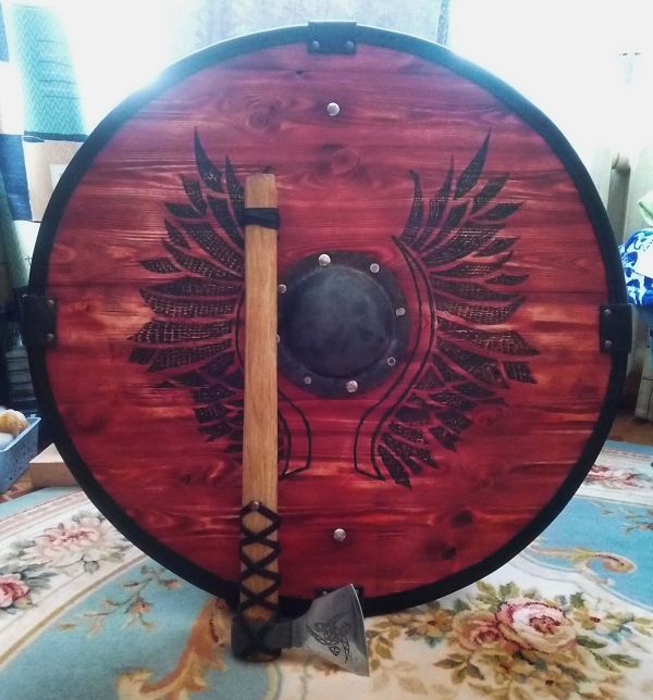 Недавно от друга поступил заказ на щит и топор викинга. И если топорами я занимаюсь довольно продолжительное время, то щит пришлось делать впервые.