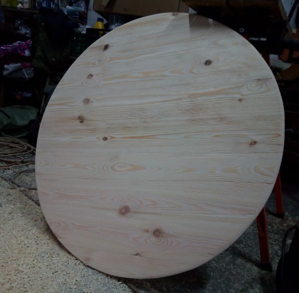 После разметки выпилил окружность электролобзиком, а затем обработал одну сторону проволочной насадкой с целью браширования дерева.