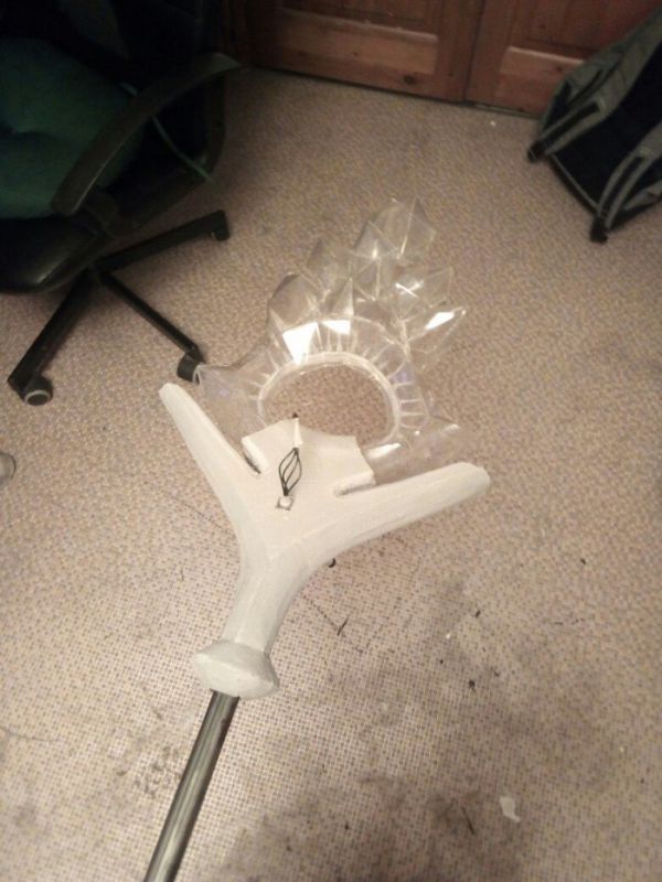 Далее в кристалл вставляется палка, ее я закрепила не только клеем, по и припаяла кусками расплавленного пластика(опят же паяльником)