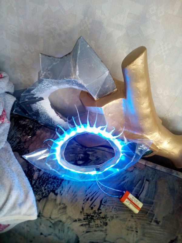 Но учите размер аккума для нижней части и по что прежде чем вести к аккуму соединить все ленты и вывести 1 из полярностей на кнопку ( те если вести до нижних кристаллов свет то надо после вернуть провод в сторону кнопки и вернуть вниз к аккуму)