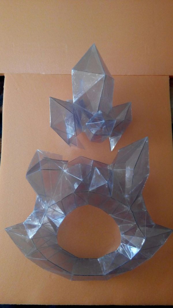 Те в итоге надо было распечатать 6 листов нашего будущего кристалла, вырезать и приклеить скотчем к пвх с низу чтоб по верхней стороне прочертить все линии.