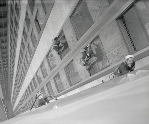 Мойщики делились на двойки, каждая из которых отвечала за 25 этажей. Та двойка, что заканчивала свой фронт работ первой получала право мыть самые верхние этажи и немного свободного времени на обзорной площадке небоскреба. Пары нужны были для того, чтобы рабочие приглядывали друг за другом и могли придти на помощь товарищу в случае чего. Из-за повышенной опасности было запрещено работать во время очень сильного ветра, в дождь или снегопад, хотя сами рабочие считали дождь самым удачным для мытья временем, так как все легче оттиралось и не надо было таскать с собой много воды. В ожидании хорошей погоды рабочие развлекали себя карточными играми в раздевалке.