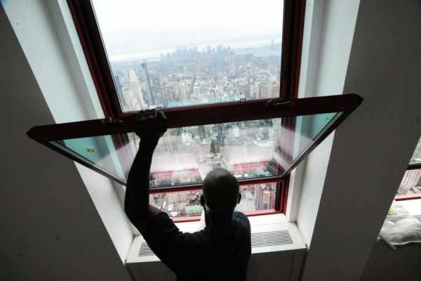 Во время реконструкции Эмпайр-стейт-билдинг все окна были заменены на так называемые swing-in. И это довольно таки удобная конструкция, если говорить о мойке. Такие окна складываются внутрь и вам не надо вылезать наружу и рисковать жизнь, чтобы их помыть.