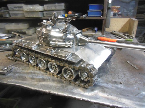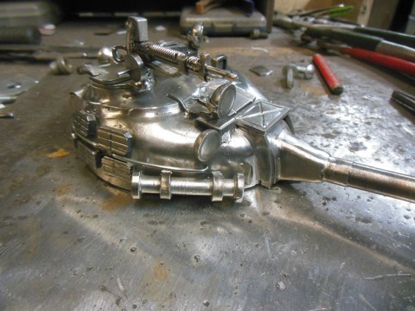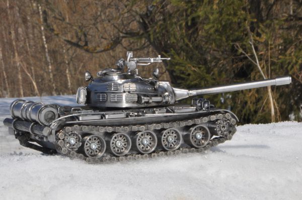 Это уже седьмой танк который сделал. Так что до роты осталось совсем не много. На этот раз попросили сделать Т-55. Так как уже такой делал есть наработки. Самое долгое и трудное делать башню. С первым танком одна башня уехала в помойку а на этот раз почти две. Делал башню две недели. После изготовления башни остальное уже пошло быстрей.