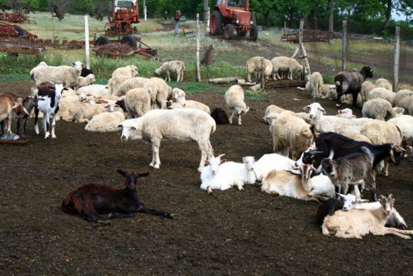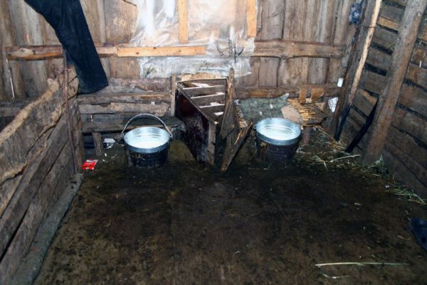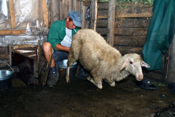 Здесь доятся овцы и козы. Через дверцу выходит животное, которое после дойки выпускается из загона.