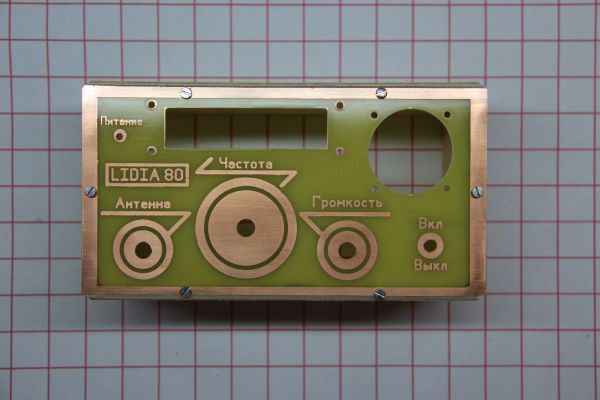 Морда изготовлена из текстолита. После вырезания всех отверстий медь была отполирована и покрыта лаком.