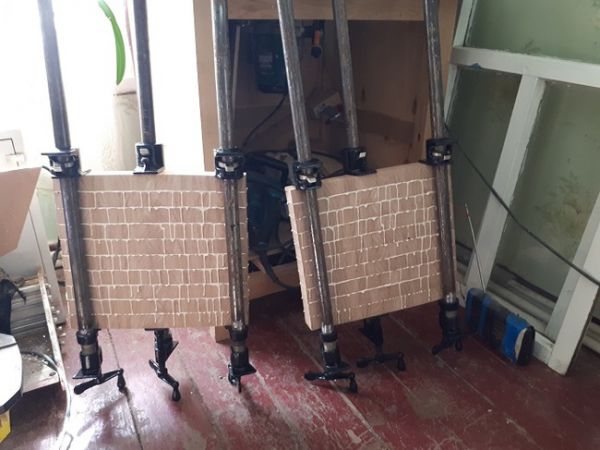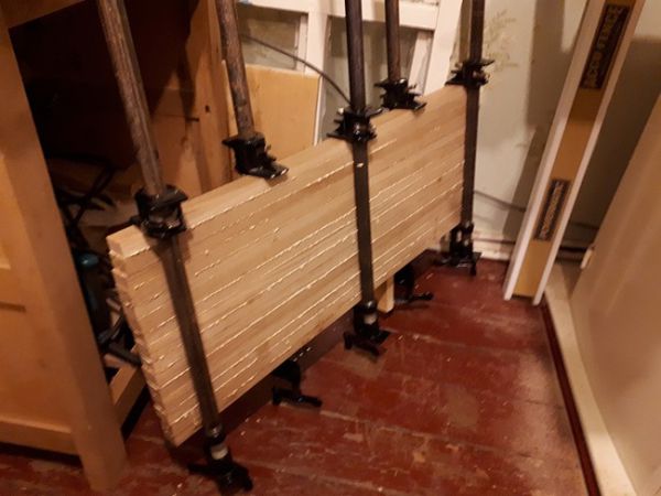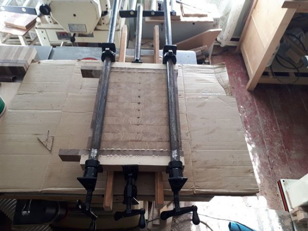 после высыхания, снимаем лишний клей и отправляем щит в рейсмус.