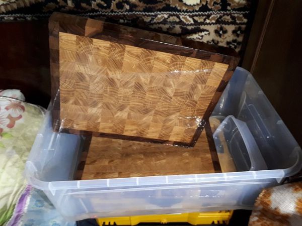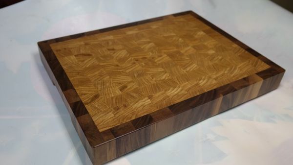 Все доски выполнены из дуба. Некоторые с окантовкой орех. Клей использовали Titebond III (разрешен для производства изделий, соприкасающихся с продуктами питания).