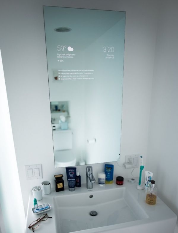 Просидев некоторое время с сердечками из глаз и высунутым языком, я тотчас захотел себе такое же, изучив сперва матчасть, разумеется. А суть этого устройства такова. Основой является двустороннее зеркало (оно же зеркало-шпион, оно же зеркало Гизелла), как в комнатах допросов. Оно остаётся зеркалом, если смотреть из светлого помещения в тёмное, и пропускает свет в обратном направлении. Далее впритык к нему вешается планшет, матрица от ноута, монитор, да хоть 60" телевизор. И на него передаётся что-то, что вы пожелаете: погода, новости, расписание электричек, курс цветмета на лондонской бирже, мультики. Соответственно нужно управляющее устройство и софт. Тот товарищ использовал Amazon FireTV и наваял себе легкий интерфейс. Но, поскольку род моей деятельности никак не связан с разработкой, пришлось искать аналогичные реализации с выложенными исходниками.