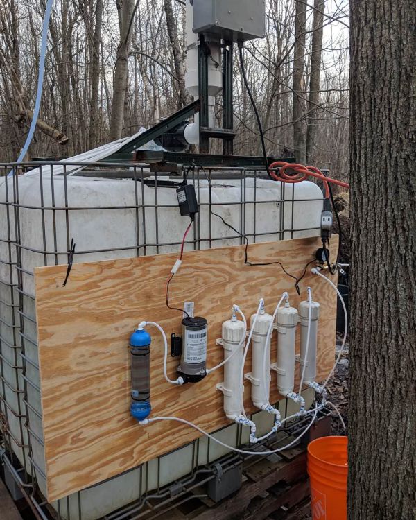 Обычно сок из кленовых деревьев содержит 2% сахара. Но в этом году предприимчивый североамериканец добавил к своей установке 4-ступенчатую систему обратного осмоса, которую собрал из деталей, купленных на eBay и в местном строительном супермаркете. Благодаря этой инновации содержание сахара поднялось до 8%, а производительность увеличилась в 4 раза.