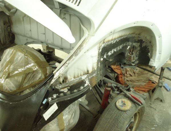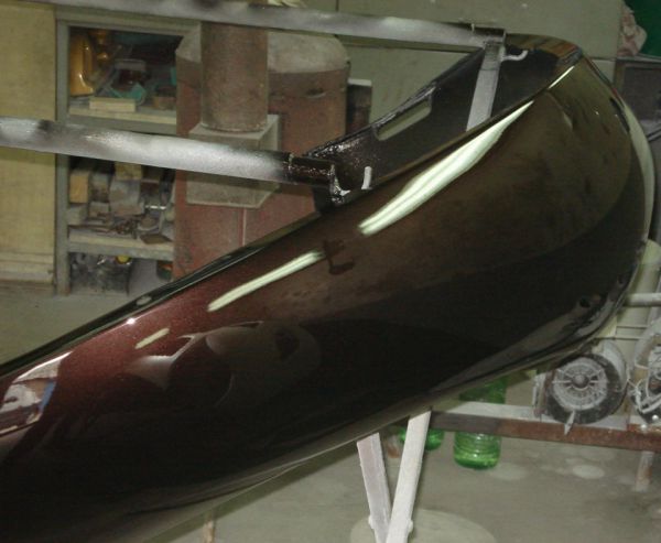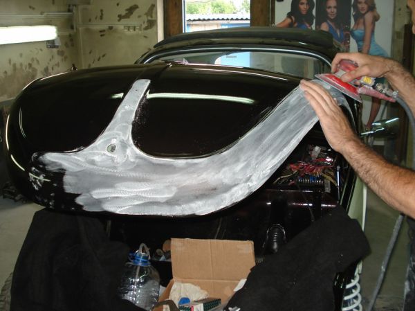 Идет процесс полировки Жука после того как морда была "залита" керамическим лаком. Следует полировать не позже чем через 24 часа после покрытия, иначе вас вспомнят всеми "Хорошими" словами и расход полировального материала на одну деталь будет равен такому количеству, которым можно было бы отполировать всю машину (проверено!).