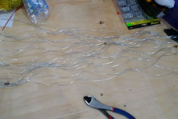 Пока вы все еще ждете высыхания клея, начните отрезать куски проволоки. Длина по вашему усмотрению, но обычно для подвешивания ловушки достаточно полуметра.