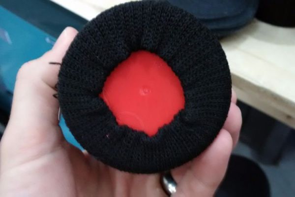 Как только ваш клей высохнет, возьмите носок и натяните его на контейнер, потянув до самого дна. Носки очень эластичны и продаются различных размеров, поэтому просто растягивайте его по наружной стороне стенок ко дну контейнера.