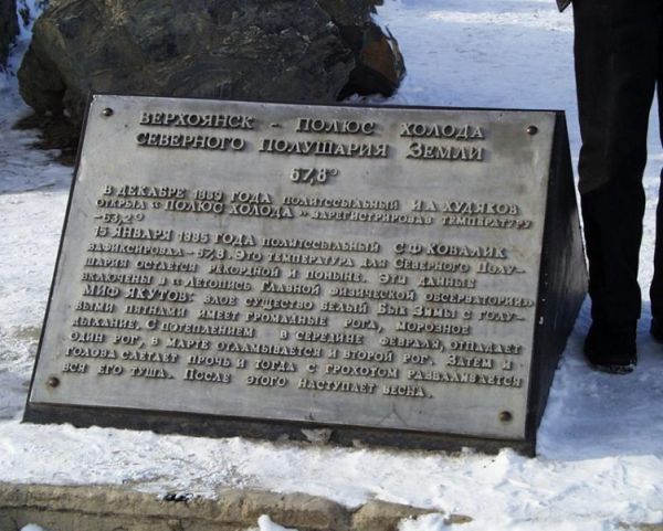 «Самая низкая температура, которая где-либо наблюдалась на поверхности земли до недавнего времени, заключается в следующих цифрах: 15-го января 1885 года в Верхоянске, в Восточной Сибири, стояло 68 градусов мороза. Такая температура никогда еще не наблюдалась в полярных областях ни одной полярной экспедицией», — такой информацией со своими читателями делился ежемесячный журнал «Новое слово» в номере за июнь 1910 года, в свою очередь ссылаясь на английское метеорологическое издание.