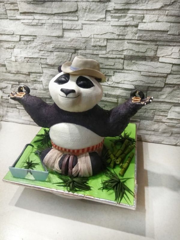 Работаю уже много лет кондитером. И делаю торты любой сложности. Техническое задание - сделать торт в виде панды в позе, как на фото. Разместить шляпу и очки. Сложность торта заключается как раз-таки в позе, а точнее в лапах, которые висят в воздухе.