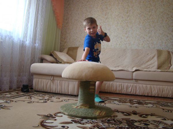 Ребенок остался очень доволен от совместного процесса изготовления гимнастического грибка.