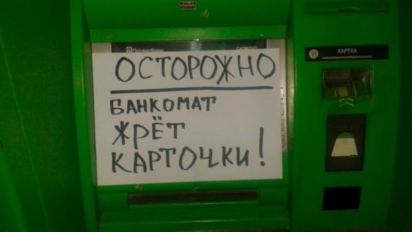 перед тем как вставить кредитку в картоприёмник, убедитесь, что она целая, а к ней не прилипла, например, обёртка от жвачки;