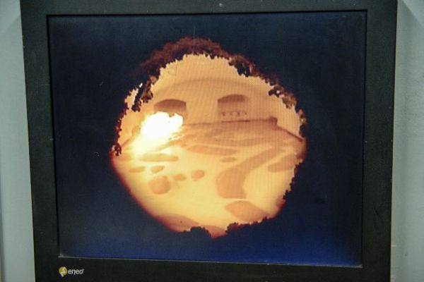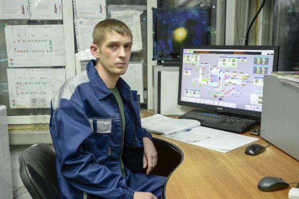 – Я слежу за работой печи, постоянно поддерживаю нужную температуру в ней, – рассказывает стекловар Александр Шарамко. – Все параметры задаются при помощи компьютера, я в основном слежу за работой по монитору. В печь можно заглянуть через смотровое окно и в специальной одежде и очках. Кроме того, есть камеры, которые заводятся в печь.