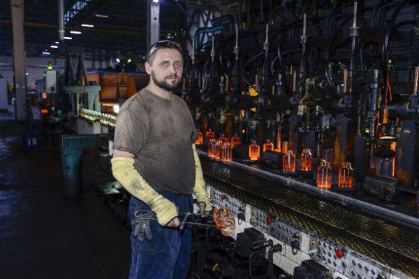 – Наша смена длится 12 часов. И это непростая работа, – рассказывает оператор стеклоформующей машины 5-го разряда Алексей Шитиков. – Я работаю на заводе уже восемь лет, но когда только пришел, не знал абсолютно ничего. Первое время только привыкал к условиям и наблюдал за работой других специалистов. Самое тяжелое, что мы постоянно находимся в этой жаре. К нам приходили люди со сталелитейного цеха, и то их хватало только на две смены – не выдерживали и уходили. Рабочих обдувает прохладным воздухом, но это не всегда спасает. Летом, когда на улице под тридцать-сорок, в цехе возле машины бывает около 80 градусов.