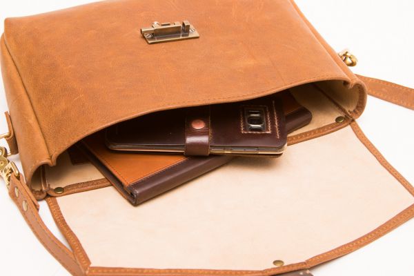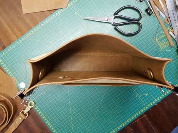 Специально для этой сумки купил хорошую латунную фурнитуру. Тут только что прошитый ремешок