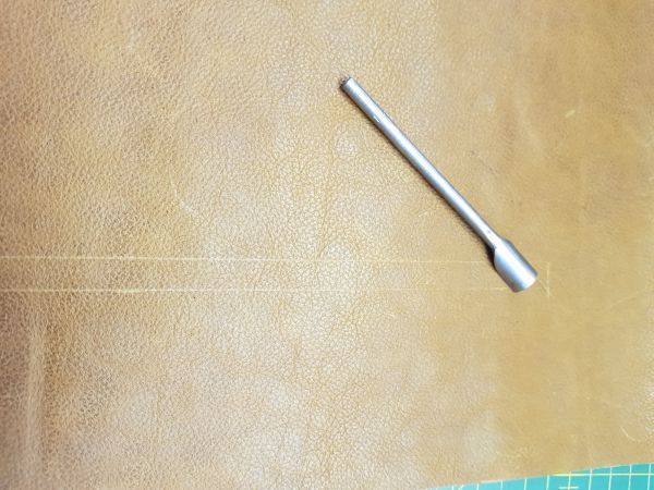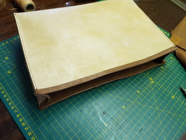 Что бы подогнуть край, даже такую не очень толстую(где-то 1.5мм) и мягкую кожу нужно шерфовать. Блин, как я это не люблю.