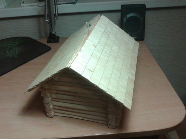 Далее была эпичная возня с черепицей ибо делал я её из расслоившейся фанеры обтачивая на наждаке каждую "черепичку", но оно того стоило