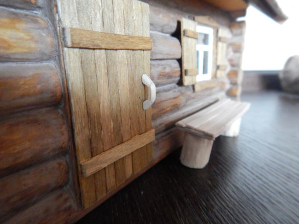 И да, если приглядеться, то можно увидеть что весь домик измазан мастикой по дереву, увы, как я ни старался, а проложить сруб без щелей не получилось, пришлось выкручиваться