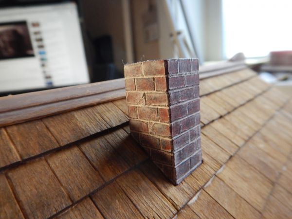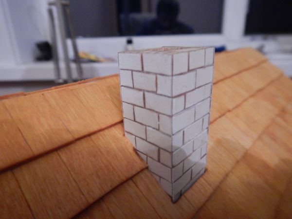 Трубу делал просто, если не сказать примитивно (не то, что со второй) на деревянную основу наклеил "кирпичики" из плотной толстой бумаги, ну а потом просто покрасил