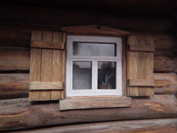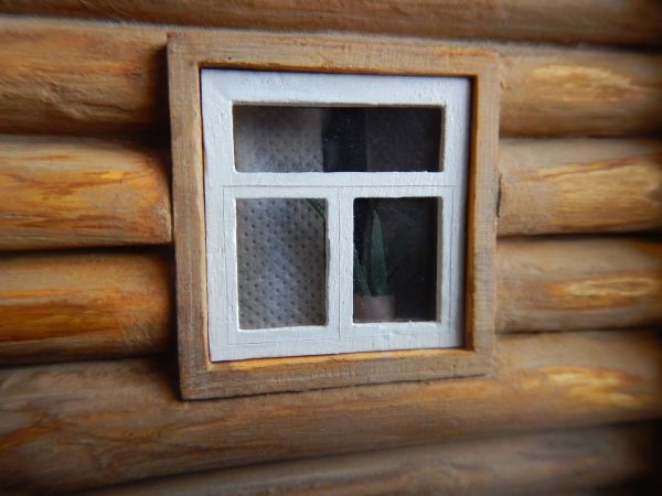 Затем занялся окном, на вставку за окном нанес черную краску, сместерил цветочек в горшочке и занавесочку, разумеется окошко "застеклил" :)