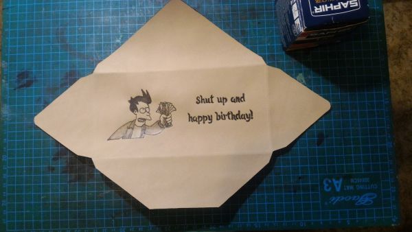 На лицевую сторону в пэйнте совместил Фрая и немного переделаную фразу)
