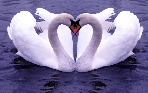 Пара лебедей, подплывающих навстречу друг другу, в момент касания образуют форму сердца. Лебеди являются символом любви, верности и преданности, так как сформированная пара остается вместе на всю жизнь[3], что в мире животных наблюдается крайне редко.