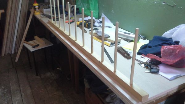 Закупил материалы: бруски 40×40×3000, шканты по 90 р за штуку (длина вроде 2600), евровинты 7×60, наждачку, краску, и столярный клей. Сумма общая 2800 рубликов. Понеслась.