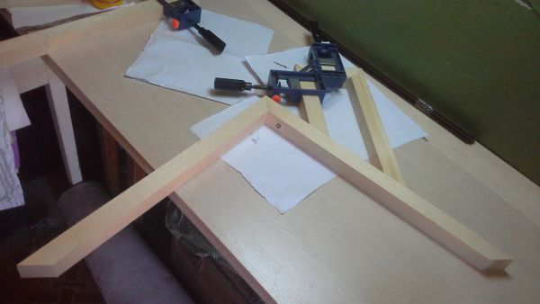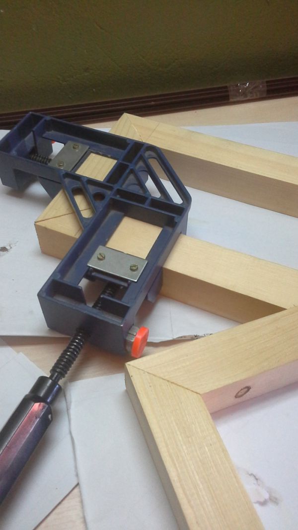 Струбцины не покупал, уже были. Для ровности углов, использовал стусло. Не понравилось. В итоге циркуляркой подравнял.