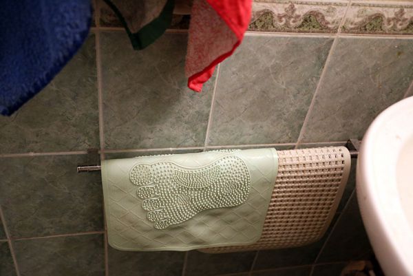Первое место - в ванной. Резиновые коврики для ног вечно не было куда девать. На полу они быстро загрязнялись. Теперь в нерабочем состоянии они висят так -