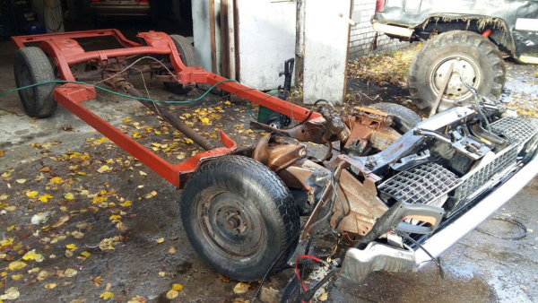 Когда уже своими силами вытянули раму, узлы креплений, стойки и сварили всё воедино, машина отправилась в на покраску: