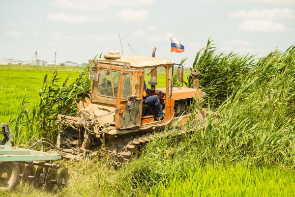 Подготовка рисовых чеков. Планировка, очистка дренажей, оросителей и сбросов, проводятся различные гидротехнические и агротехнические мероприятия.